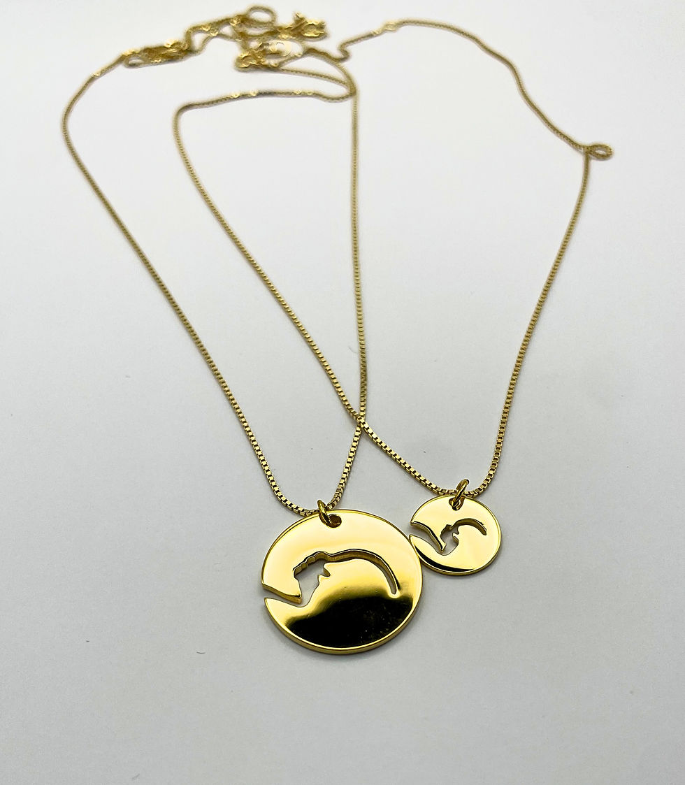 Todos os nossos colares são feitos sob medida e desenhados especificamente a partir das suas fotos de ultrassom, batimentos cardíacos ou da barriga, de acordo com a sua escolha. Isso significa que cada colar é verdadeiramente único e exclusivo... assim como o seu filho.